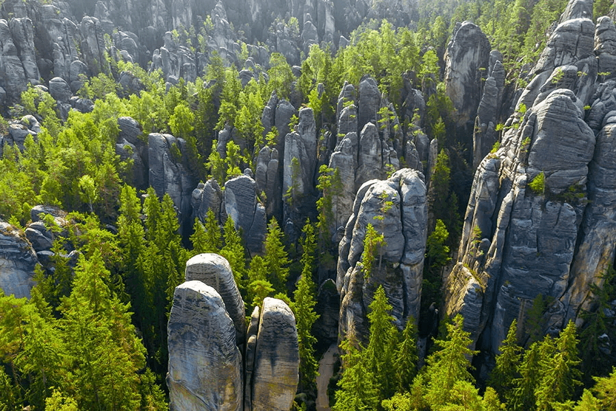 • Чеська Швейцарія – це справжнє лісове королівство. Ліс покриває майже всю її територію. Тут ростуть переважно хвойно-березові ліси, найстаріші з яких можна знайти у неприступних ущелинах та на високих скелях, що створюють дуже красиві картини своїми вигнутими стволами.